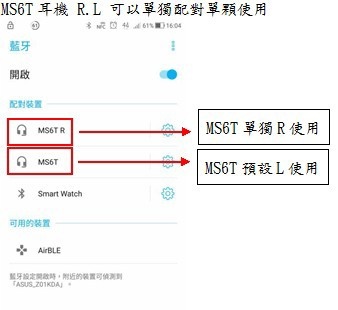 這款MS6T耳機也相當獨特,若只想要用1個耳機的話依自己喜好要用R或L戴在耳朵上,MS6T它的R.L可以單獨分開使用它有此功能。